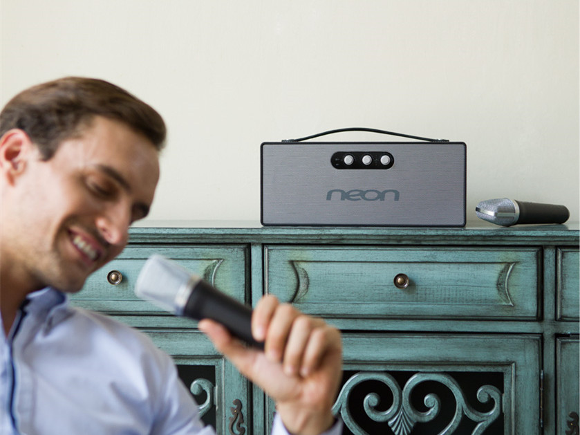 皮革包裹的便攜無線雙麥K歌音響