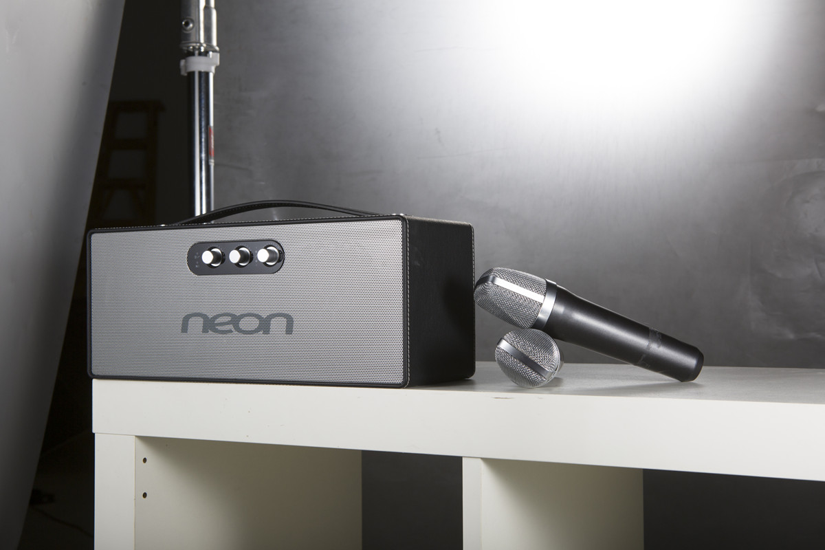 ● Wireless Mic*2● Bluetooth Music Player● USB charging (5V/1A)● Audio in (3.5mm)● Lithium Battery● LED Indicator● Output Power: 5W*2(RMS)● AC/DC Adaptor(15V/2A)● Dimensions: (W) 340 x (D) 130 x (H) 140mm