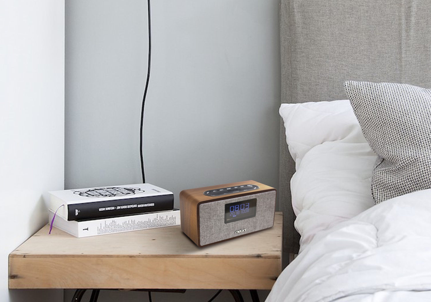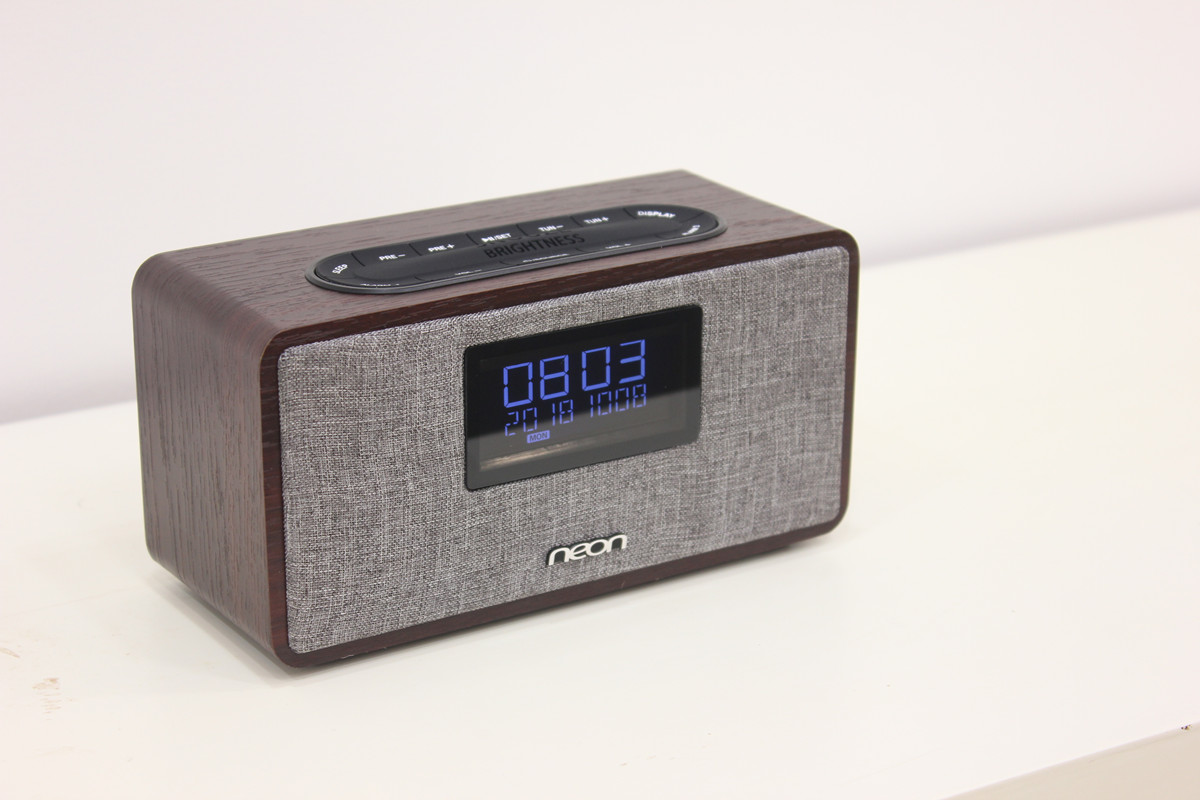 ● USB for charging 5V1A ● 10W*2 RMS● Dimensions: (D) 78 x (W) 183 x (H) 90mm聲音超級好聽的大功率桌面實木藍(lán)牙鐘機(jī),音質(zhì)優(yōu)秀,低音強(qiáng)勁,實木外觀,布藝面板,居家良品